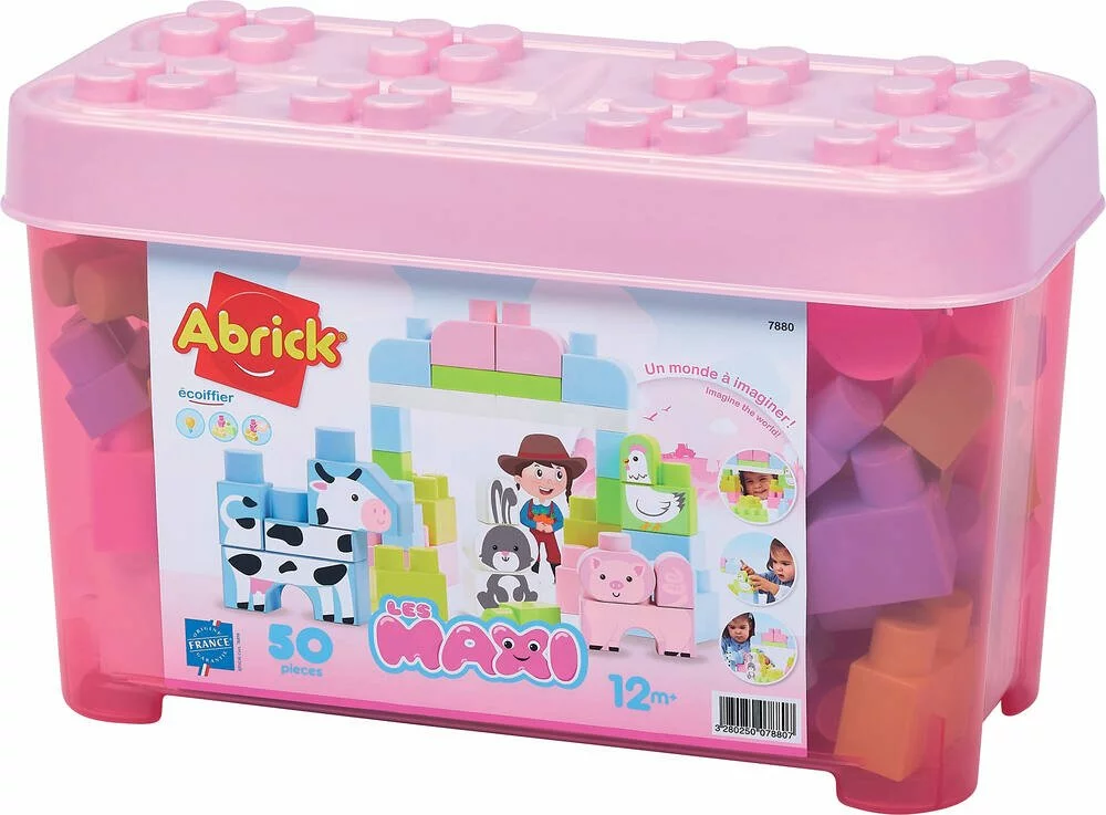 50 briques pour construire 4 animaux et leur univers. Le couvercle sert de base de jeu.