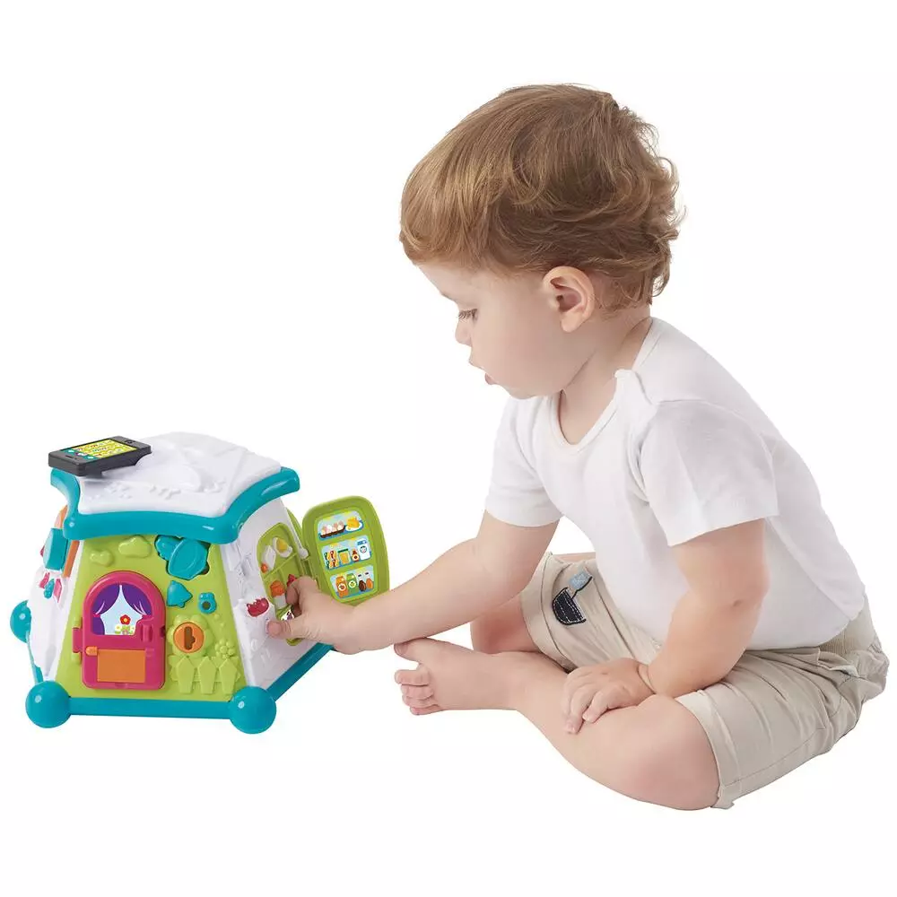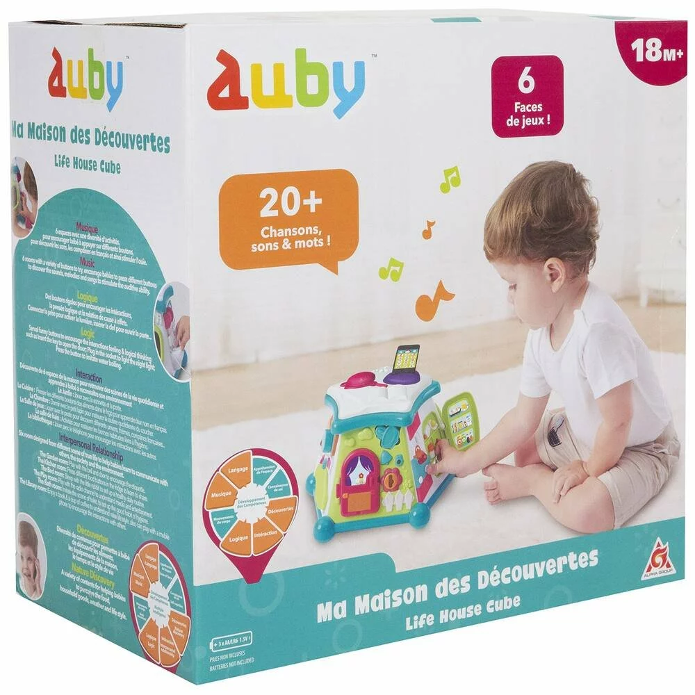 L’enfant s’éveille grâce aux activités sonores et lumineuses autour des différents moments de la journée (6 faces) : je joue, je fais ma toilette, je me couche, le repas, le jardin, je me détends. Avec plus de 20 chansons, sons et mots.