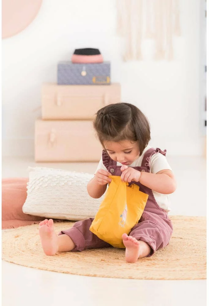 Le Grand Coffret Nurserie contient tous les accessoires indispensables pour s’occuper de son petit poupon : un pot; un tube de crème; une lingette; une tétine; une couche en tissu; une cuillère; une assiette de purée; un biscuit; un biberon; un bavoir et un tote bag pour tout ranger.