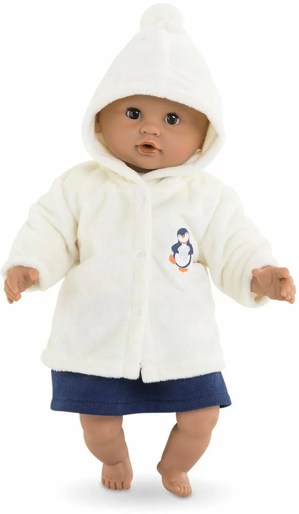 Brrr ! C’est l’hiver; il fait froid… Le Manteau Nuit Étoilée est le vêtement d’extérieur indispensable pour les petits poupons de 30 cm. Le manteau en fausse fourrure est muni d’une capuche à pompom chaude et douillette.Confectionné dans des matières douces et résistantes; il est facile à enfiler grâce aux bandes auto-agrippantes adaptées à la dextérité des petites mains. Les petits poupons de 30cm disposent d’une collection variée de vêtements et d’accessoires dans la gamme mon premier poupon Corolle pour pouponner pour la première fois.
