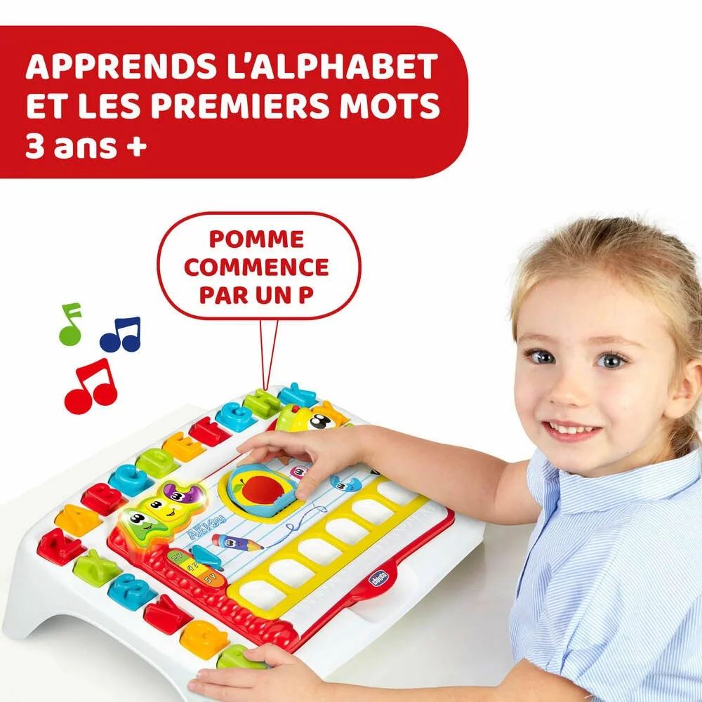 Apprends les lettres et les premiers mots ! 3 modes de jeu évolutifs avec fonction auto-correctrice. 26 lettres incluses et 26 mots à composer. Boîte de rangement integrée. Effets sonores et lumineux.