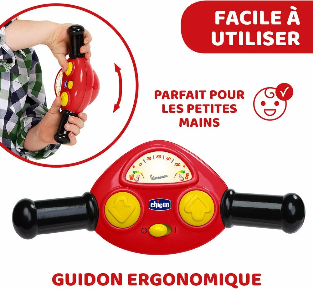 L’iconique Vespa en version télécommandée ! Ressens les émotions de la conduite grâce au guidon intuitif. Effets sonores (bruits de moteur et klaxon).