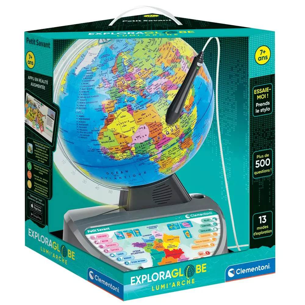 Un formidable globe interactif équipé d’un haut-parleur et d’un stylo à lecture optique, ainsi que d’une arche lumineuse ! Les enfants pourront découvrir le monde grâce à de nombreuses thématiques : Continents, Pays, Capitales, Superficies, Populations, Monnaies, Langues, Territoires, Reliefs, Fuseaux horaires, Faits intéressants. Le jeu propose plus de 500 questions divisées en 3 niveaux de difficulté différents pour tester les connaissances acquises. L’apprentissage sera d’autant plus agréable grâce au design du globe, à sa qualité audio et à plus de 3 heures de contenus éducatifs sur tous les pays du monde. De plus, grâce à l’appli gratuite à télécharger, les enfants pourront vivre une étonnante expérience de réalité augmentée. Lorsque le globe sera cadré à l’aide d’une tablette ou d’un smartphone, les enfants pourront voir apparaître sur l’écran des animaux, des monuments et des cultures différentes.