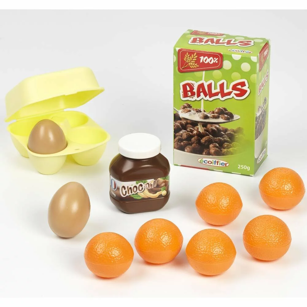 Pour faire ses courses comme maman. Un joli chariot de supermarché garni d’accessoires. Accessoires inclus : 1 boîte à œufs avec 2 œufs inclus, 6 oranges, 1 pot de pâte à tartiner et 1 boîte à céréales en carton. Chariot à la taille de l’enfant.