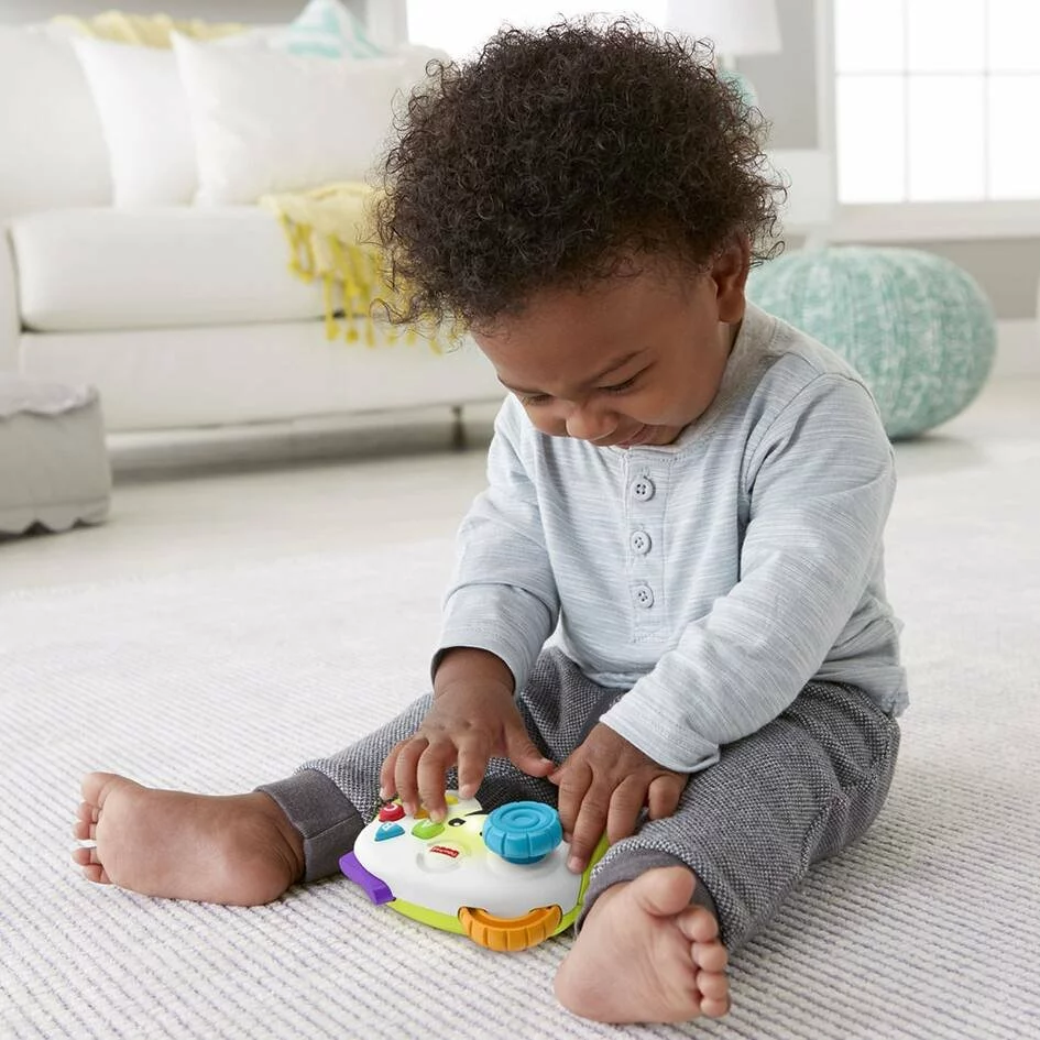 Manette de jeux et d’apprentissages sons et lumières avec 2 modes: jeux et apprentissages. La manette s’illumine de plusieurs couleurs et au rythme des apprentissages.4 boutons ABCD de formes et couleurs . Les flèches directionnelles pour apprendre les chiffres. Le joystick pour déclencher les musiques. Les boutons latéraux pour développer la motricité fine.