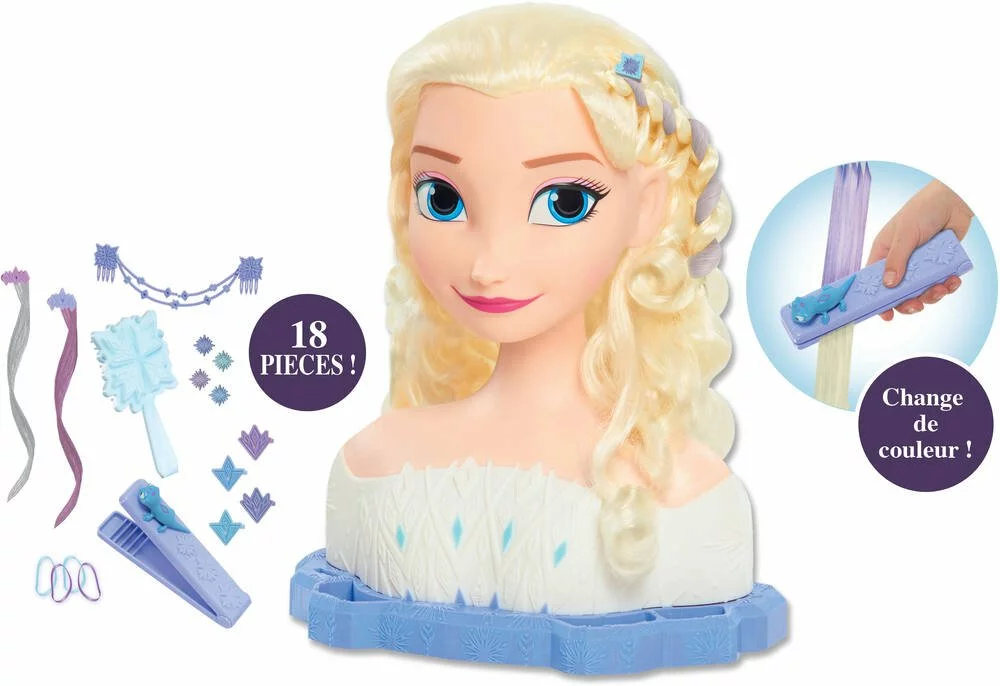 Fais plein de coiffures fantastiques à Elsa ! Ses cheveux changent de couleurs grâce à l’accessoire inclus! C’est magique !