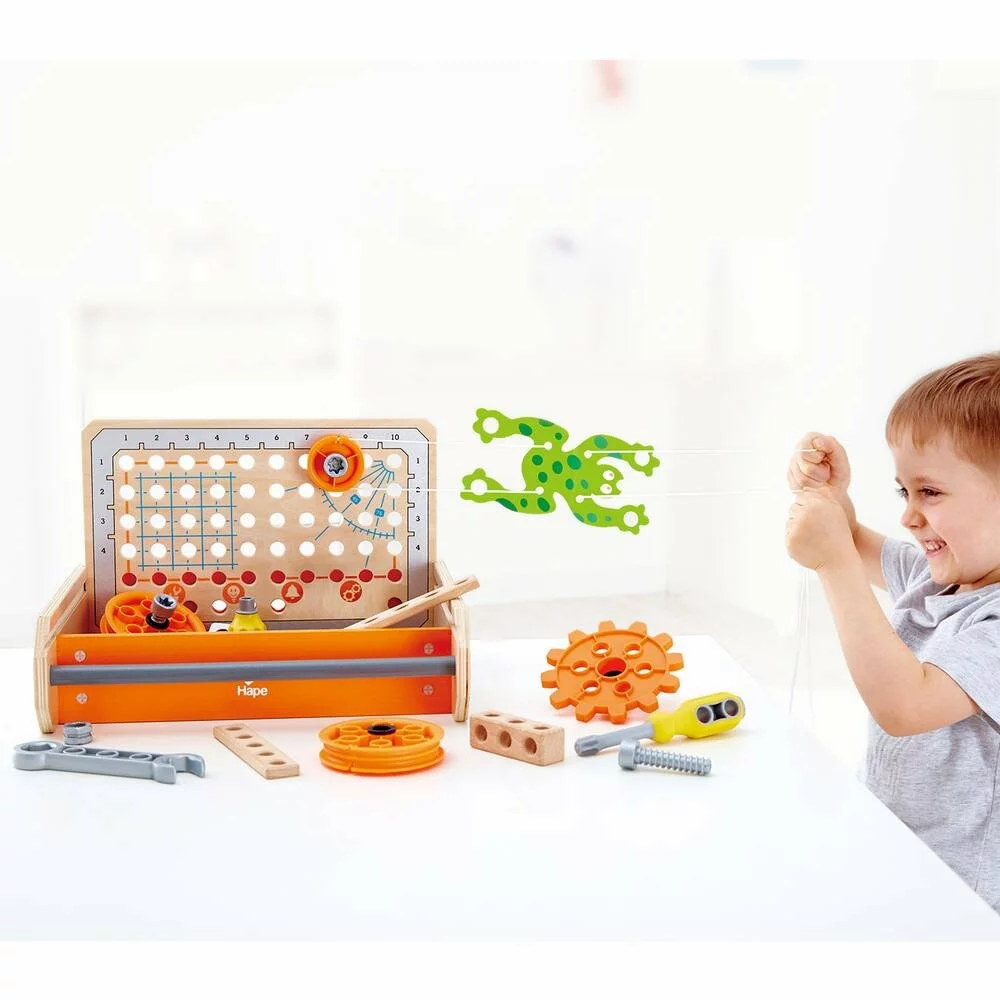 Les bonnes choses viennent dans des petites boîtes ! Cette boîte à outils compacte contient tout ce dont les enfants de quatre ans et plus ont besoin pour réaliser plus de six expériences passionnantes qui leur apprendront la science et l’invention.
