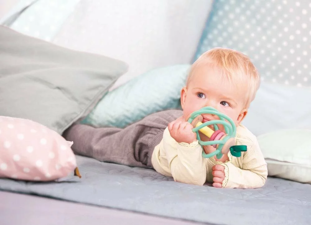 DĂ©couvrez ce nouveau jouet d’Ă©veil de la gamme Eltern pour les bĂ©bĂ©s.. Une jolie pomme composĂ©e d’un cadre flexible en silicone et Ă l’intĂ©rieur il y a un noyau en bois, qui est entourĂ© par 2 anneaux en plastique.