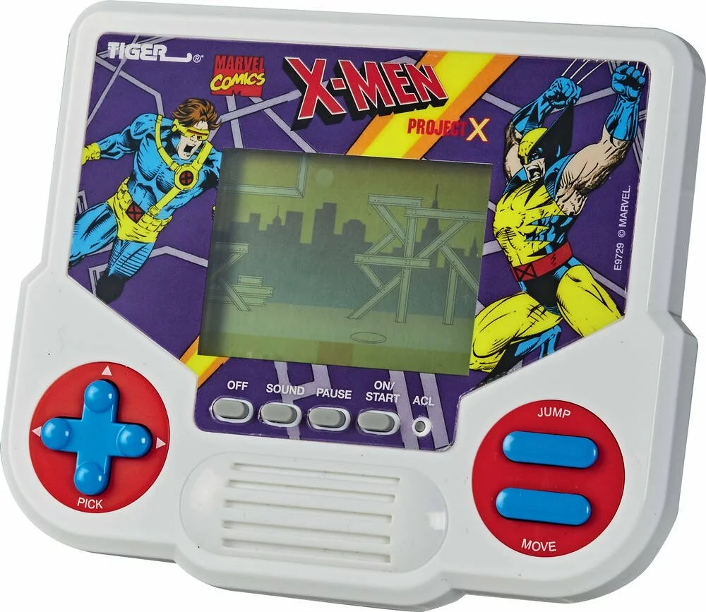 Un vĂ©ritable voyage dans le temps ! Qu’ils soient fans invĂ©tĂ©rĂ©s des technologies rĂ©tro ou sans expĂ©rience, les gamers vont adorer ce jeu Ă©lectronique X-Men Project X de Tiger Electronics, inspirĂ© du jeu original des annĂ©es 90. Les enfants jouent Cyclops et doivent utiliser leur rayon lumineux optique pour vaincre Juggernaut et Apocalypse. Besoin d’aide ? Wolverine apparaĂ®t pour les aider. Le jeu consiste Ă rĂ©ussir les 5 niveaux en essayant de ne pas perdre de vies et en sautant jusqu’au soleil pour se recharger. Le jeu a Ă©tĂ© conçu pour reproduire la technologie du jeu original. Instructions incluses. Conçu pour les enfants (Ă partir de 8 ans), il plaira aussi aux ados et aux adultes. Jeu portatif pour 1 joueur. 2 piles LR6 non fournies. ATTENTION : Ce jouet produit des Ă©clairs de lumière qui peuvent dĂ©clencher une crise d’épilepsie chez les personnes sensibles.