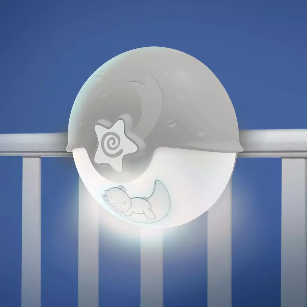 Projecteur, point lumineux et lampe de chevet. Projecto Lampe est une veilleuse très complète pour bercer bébé et l’entrainer au pays des rêves ! Un simple geste pour faire pivoter le capot et passer automatiquement d’un mode à l’autre ! Grâce à son système de projection multi couleurs, ses douces berceuses et sons de la natures. Projecto lampe va aider bébé à glisser dans un sommeil paisible. Grâce à sa fonction veilleuse point lumineux, Projecto Lampe va veiller sur le sommeil de bébé. Avec son capteur sonore intégré la veilleuse se déclenche automatiquement quand bébé pleure ! Quand bébé grandit, Projecto Lampe s’utilise aussi comme petite lampe de chevet.