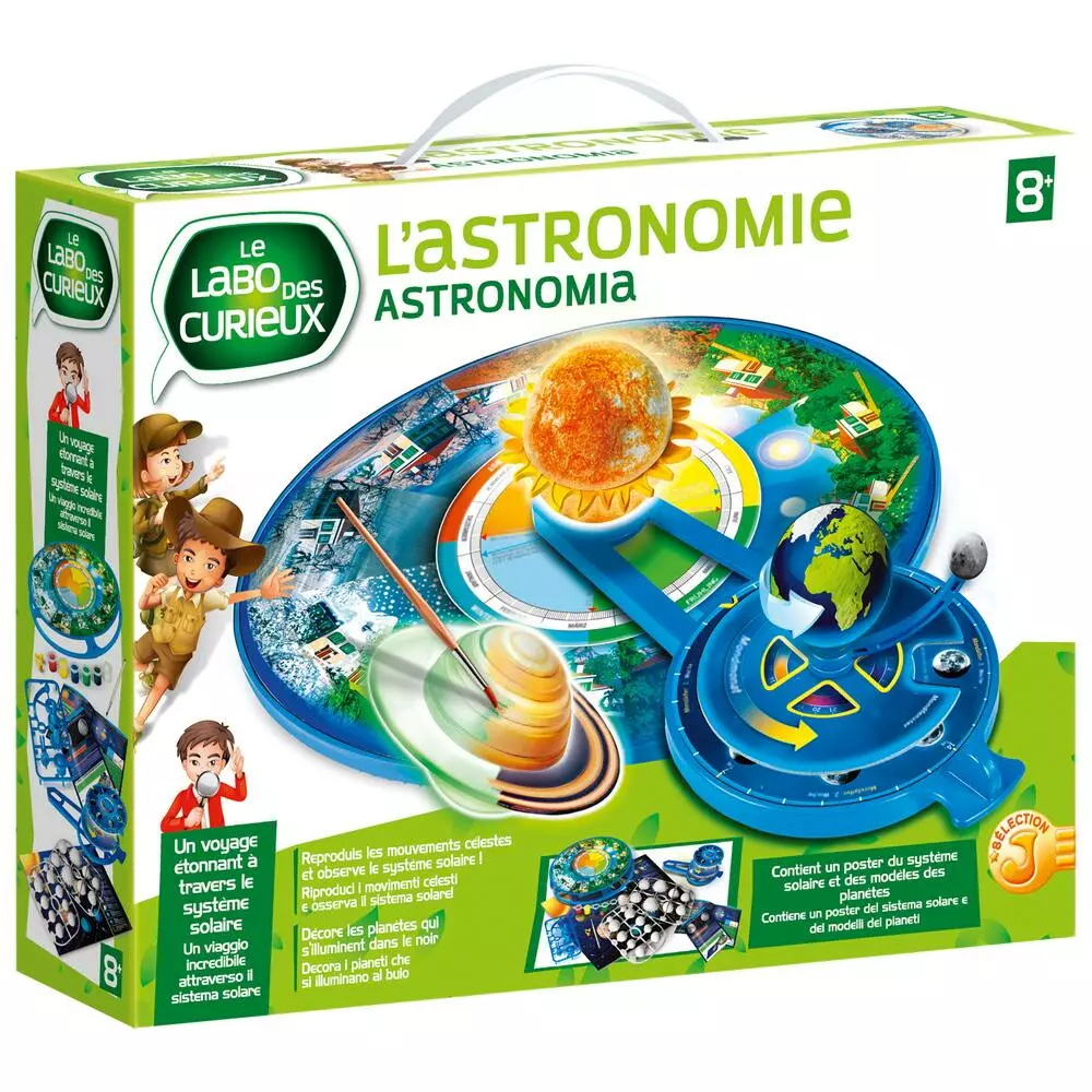 Un voyage étonnant à travers le système solaire. Reproduis les mouvements célestes et observe le système solaire ! Décore les planètes qui s’illuminent dans le noir. Le jeu contient un poster du système solaire, des modèles phosphorescents du Soleil, de la lune et des planètes, des gouaches et un pinceau. Le planétarium comprend un socle en plastique, un disque des saisons, un bras rotatif, un disque de la lune, un adhésif double face, un disque des phases lunaires, le groupe d’engrenages, la lune en plastique et un indicateur de lieu. Manuel illustré inclu.