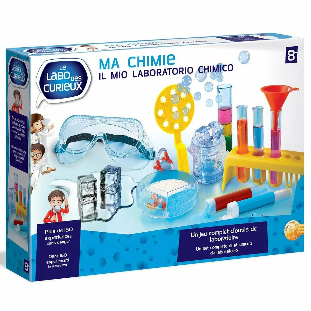 Ma chimie est un jeu scientifique permettant de réaliser 150 expériences de chimie en toute sécurité. De nombreux accessoires de laboratoire sont mis à la disposition de votre enfant, et un livret d’instruction est fourni pour le guider pas à pas dans cette aventure. Il pourra épater ses amis avec ce jeu.