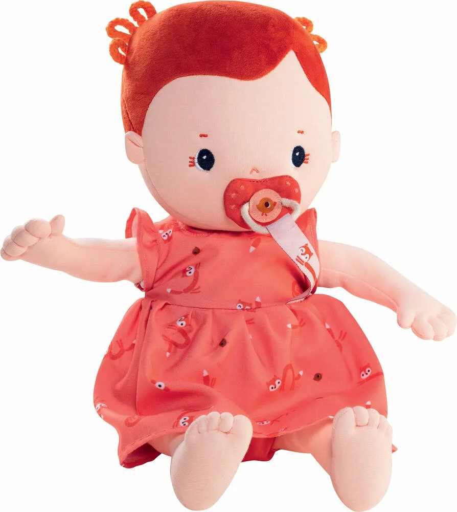 Rose est un poupon qui, comme un vrai bébé, adore les câlins. Sous sa petite robe à la mode, que vous pouvez facilement enlever et enfiler, elle porte une couche qu’il faut régulièrement changer, comme une vraie maman ou un vrai papa de poupée. Si elle a un chagrin, la tétine aimantée la consolera. Rose mesure 36 cm et grâce à son poids, ressemble à un vrai nouveau-né.