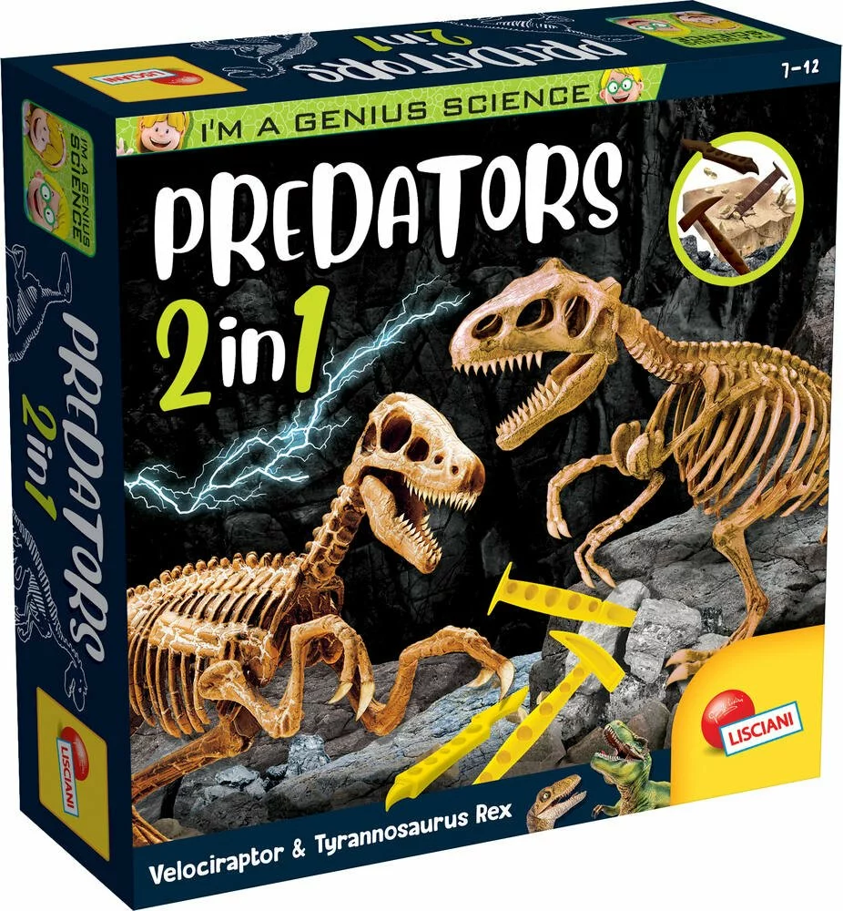 Découvre la paléontologie grâce à ce set et creuse le bloc de craie pour découvrir les fossiles d’un vélociraptor et d’un T-rex. Livret et accessoires inclus.