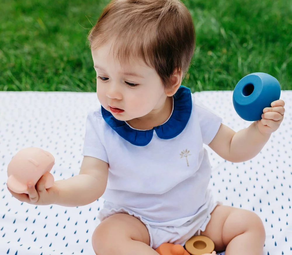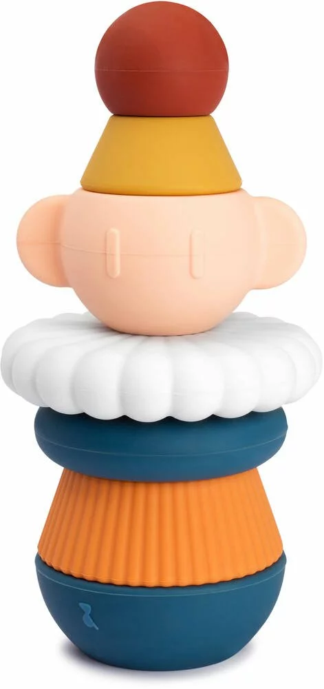 7 pièces à empiler. Éveille et stimule les sens de bébé en douceur : vue, toucher et ouïe grâce à un grelot présent dans la tête. Il peut également soulager les gencives. Pas de tige centrale ! Les anneaux s’empilent les uns sur les autres. Un petit clown, un marin, une multitude de combinaisons possibles, à votre enfant de choisir ! Composé intégralement de silicone de grade alimentaire (FDA et LFGB standards). Passe au lave-vaisselle pour un entretien facilité. Conçu avec une psychomotricienne. Instructions sur la boîte.