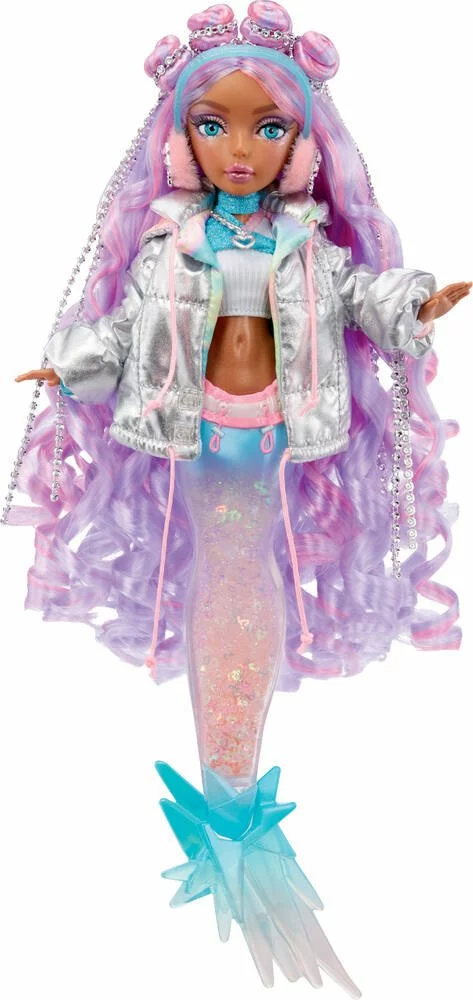Contient 1 poupée sirène avec une queue articulée et remplie de paillettes, qui change de couleur au contact de l’eau. Avec des vêtements amovibles et de nombreux accessoires. 1 support pour poupée inclus.