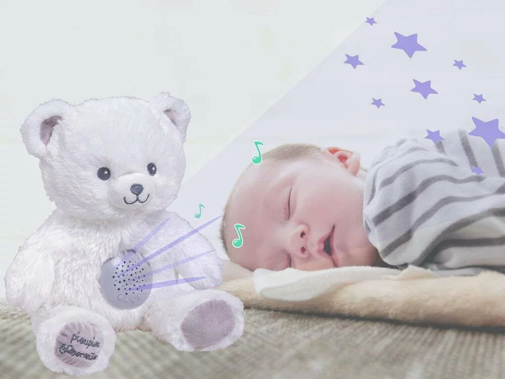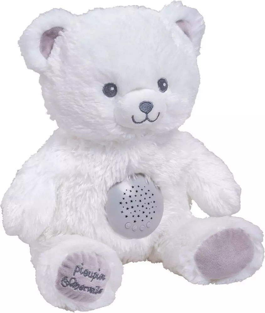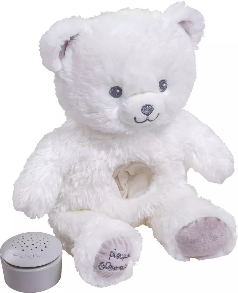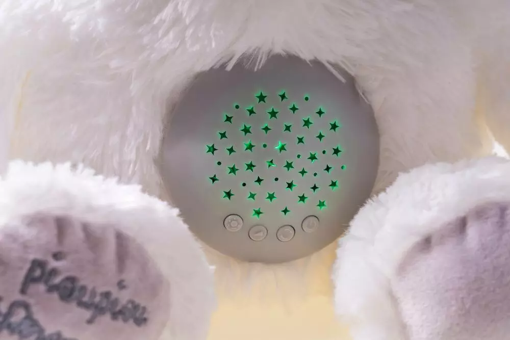 Projette un joli ciel étoilé au plafond. 3 couleurs et 4 modes. 7 mélodies et 5 sons (vagues, cœur, oiseau…). Arrêt auto.