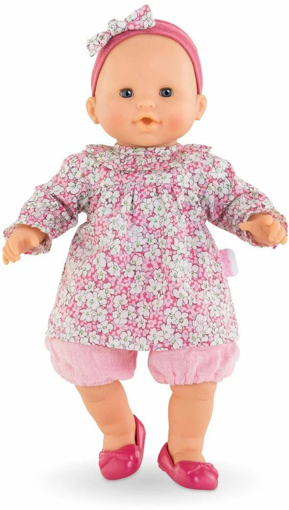 Louise est le grand poupon Corolle pour jouer et faire comme les grands. Elle mesure 36cm, une taille parfaitement adaptée aux petits bras de l’enfant pour la câliner, la materner et reproduire les gestes qui font devenir grand. Son visage, ses bras et ses jambes, à la délicate senteur de vanille, sont en vinyle doux au toucher. Son corps est souple pour faciliter ses mouvements et elle tient assise. Son pouce peut se maintenir dans sa bouche. Avec ses yeux dormeurs, elle fait dodo quand on la couche sur le dos. Elle est habillée d’une blouse et d’un bloomer, coiffée d’un bandeau assorti et chaussée d’une paire de ballerines.