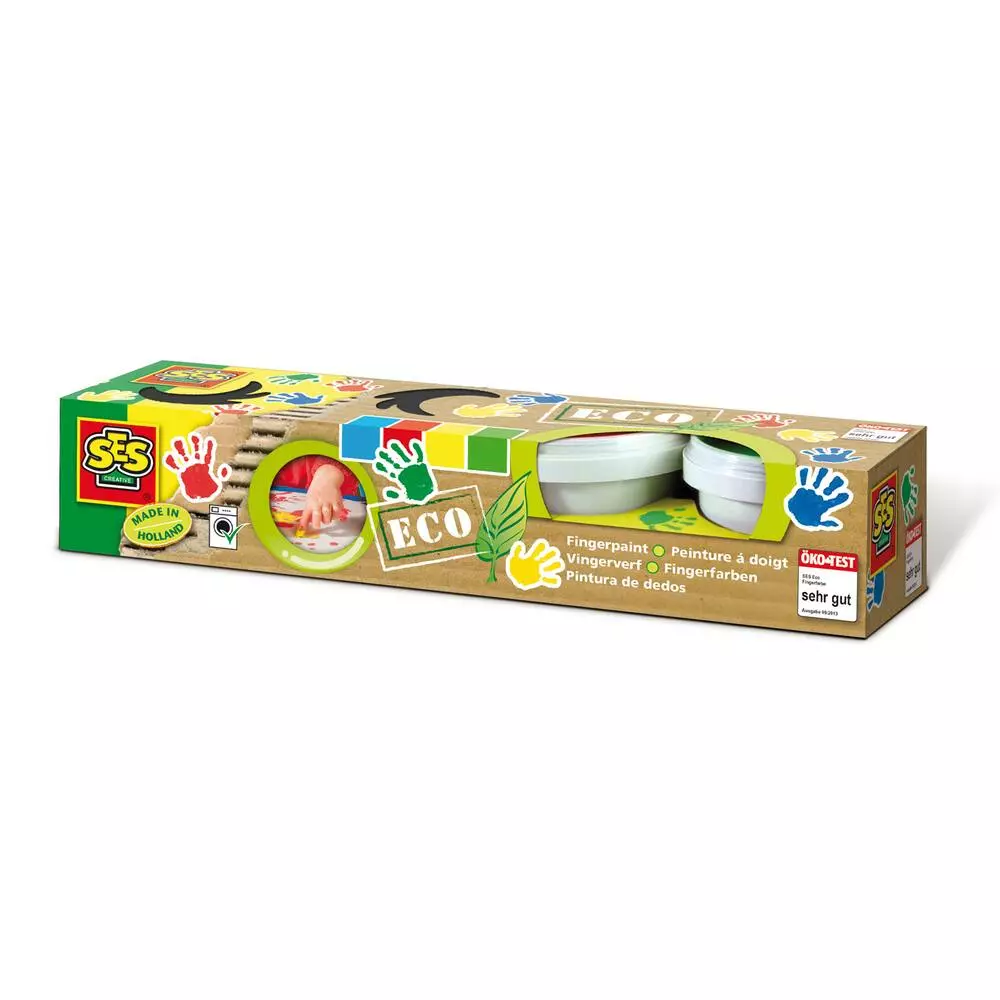 Tous les emballage de SES sont toujours en carton recyclé. SES ECO va encore plus loin. Le pourcentage des matériaux naturels est encore plus élevé et nous utilisons du plastique recyclé. La peinture à doigts est une ligne de produits parmi les plus connues de SES Creative. Sa qualité, l’intensité de ses couleurs et son nettoyage facile : la peinture à doigts de SES est imbattable. La peinture à doigts dans la ligne ECO est un choix très responsable car nous avons tenu compte, en choisissant les matériaux, autant que possible de l’environnement.