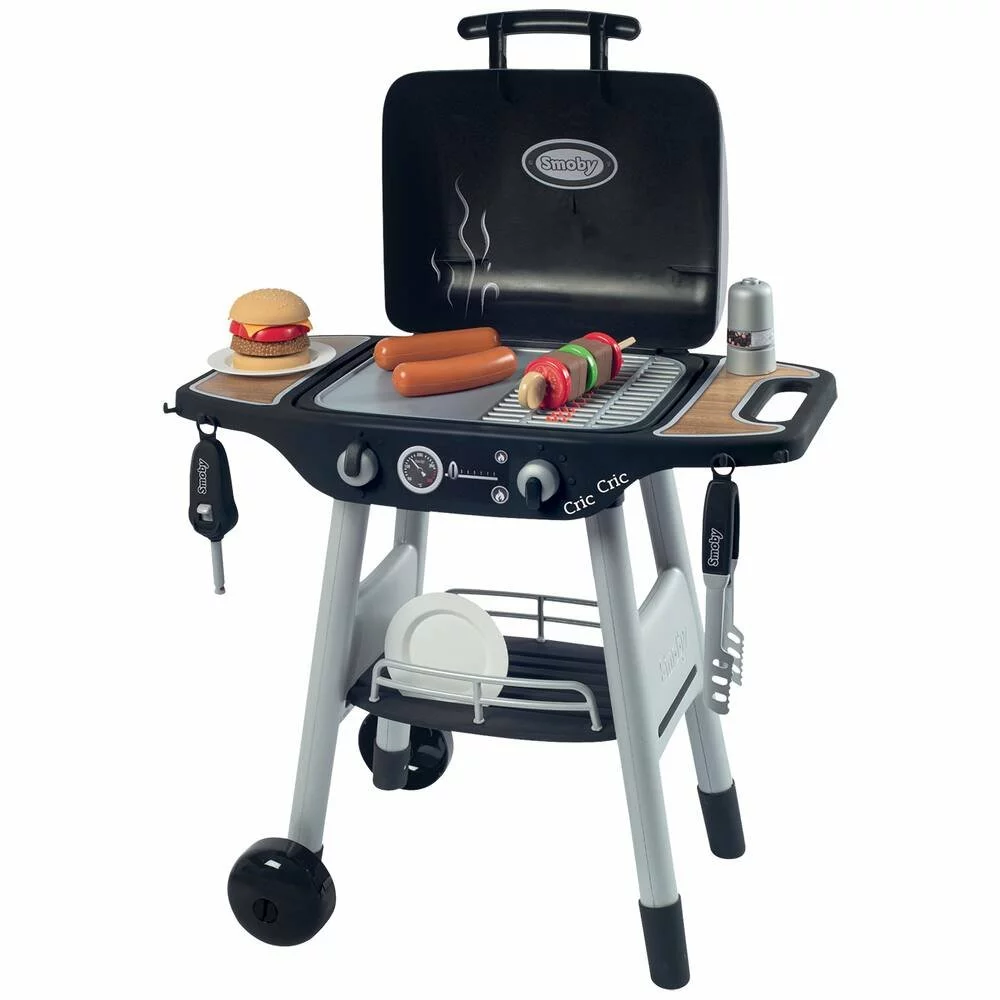 Pour plus de réalisme, le barbecue est complété par 18 accessoires pour faire des grillades : un hamburger avec cinq éléments à assembler, une brochette à composer avec des morceaux de légumes et de viandes, un allume-gaz cric crac, une pince, deux saucisses, deux assiettes et un moulin à sel/poivre cric crac.