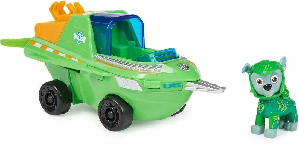 Tes personnages préférés du dessin animé la Pat’ Patrouille sur le thème Aqua Pups. Véhicule de Rocky avec transformation unique pour partir en mission sous-marine. Avec une figurine amovible de Rocky incluse. Contenu : un véhicule et une figurine Pat’ Patrouille Aqua Pups.