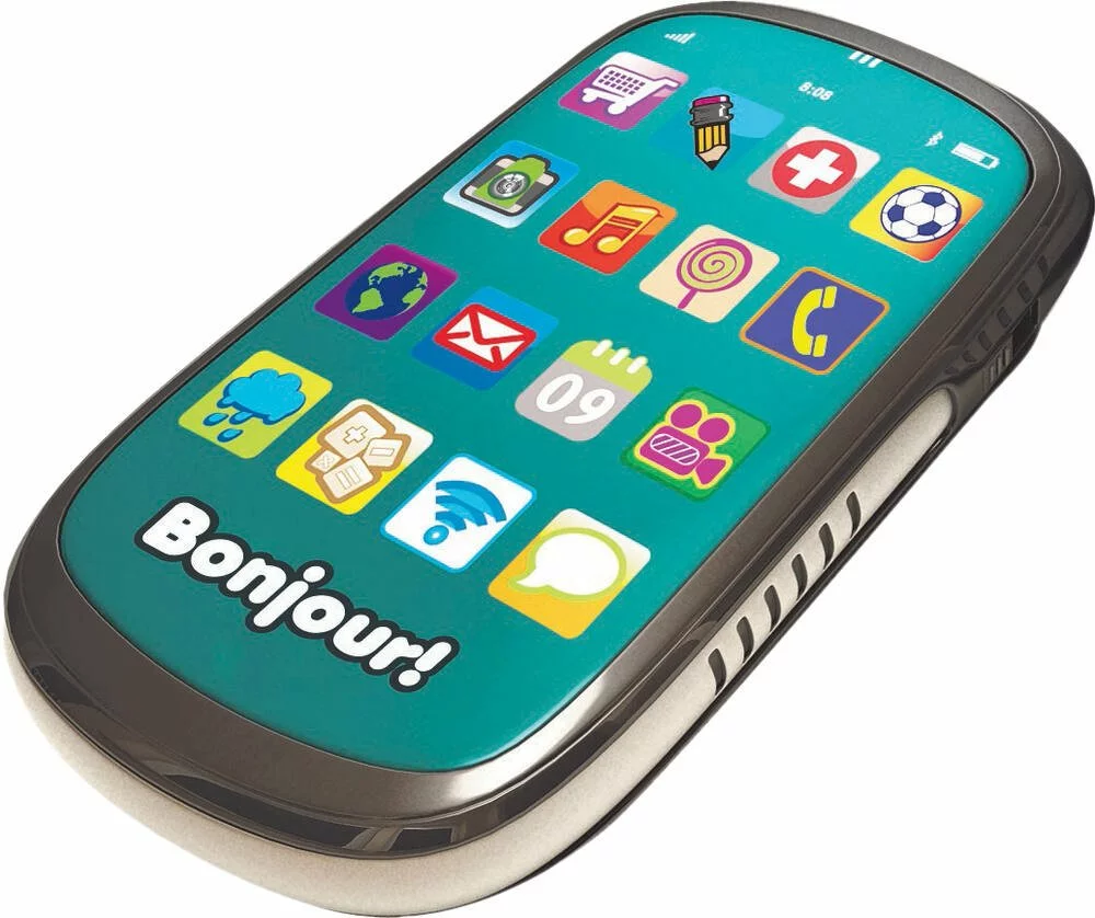 Contient 1 smartphone et un porte-clés. Avec effets sonores et lumineux. 4 piles LR03 fournies (2 pour le smartphone et 2 pour le porte-clés). En plastique. Léger et facile à manipuler. Développement de la motricité. Porte-clés : avec 4 sons de voiture et un bouton pour activer la lumière. Téléphone portable : avec 16 boutons tactiles, appuie sur les gros boutons pour entendre des sons amusants. Dimensions : téléphone 6.5 x 2.5 x 12 cm, porte-clés 6 x 3 x 9 cm, clefs 6.5 x 3 cm.