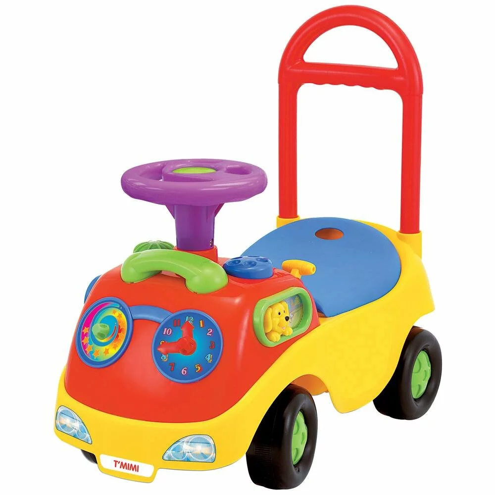 Porteur robuste avec des activités ludiques pour une conduite amusante. Avec effets sonores et lumières clignotantes. Appuie sur le bouton de démarrage et abaisse/monte le levier de vitesse pour entendre le son du moteur. Avec bruit de klaxon (bouton au milieu du volant). Apprend à lire l’heure avec l’horloge éducative. Tourne le rouleau coloré. Avec des mélodies. Inclus un téléphone pour plus de jeu : combiné amovible. Avec sur les côtés un chien à faire coulisser et des pages à tourner. Rangement sous le siège. Poids maximum supporté : 25 kg. Hauteur de l’assise : 18 cm. 2 piles LR6 fournies. Doit être assemblé par un adulte. Instructions imprimées sur la boîte. En plastique. Age : 12-36 mois.