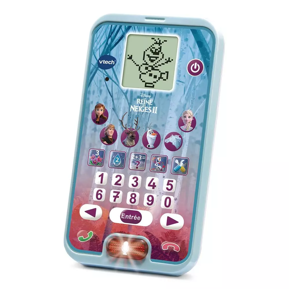La Reine des Neiges II. Le smartphone éducatif de 3 à 7 ans. 6 activités éducatives pour jouer et apprendre avec tous les héros de la Reine des Neiges II ! Apprentissage des chiffres, de la logique, des calculs et mémorisation Écran LCD et bouton lumineux. Avec la vraie voix des personnages de La Reine des Neiges ! Réglage du contraste et sélection de la sonnerie du smartphone. Mélodie de fond désactivable. Plus de 70 phrases, sons, activités et animations