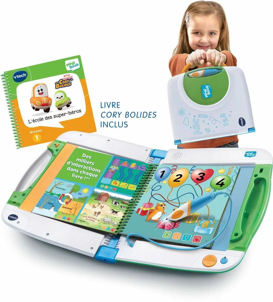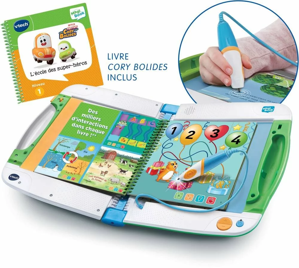 Un système interactif qui donne vie à une bibliothèque de livres éducatifs. Apprentissages et interactions au fil des pages grâce au stylet. 1 livre découvertes et le livre Tut Tut Cory Bolides inclus.