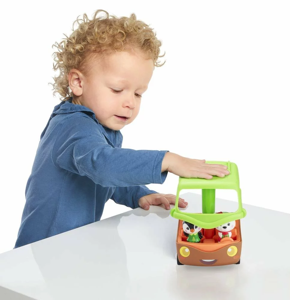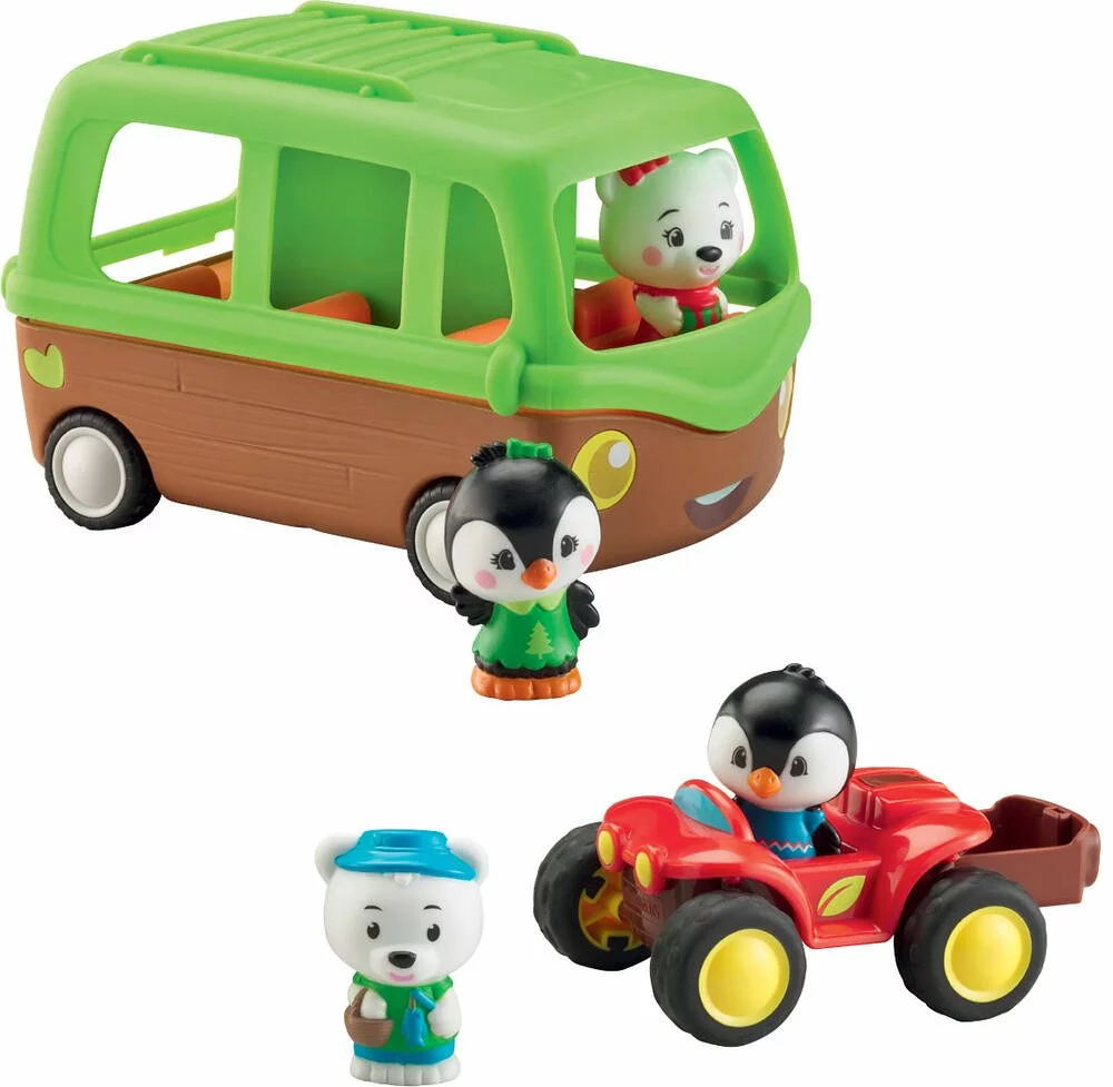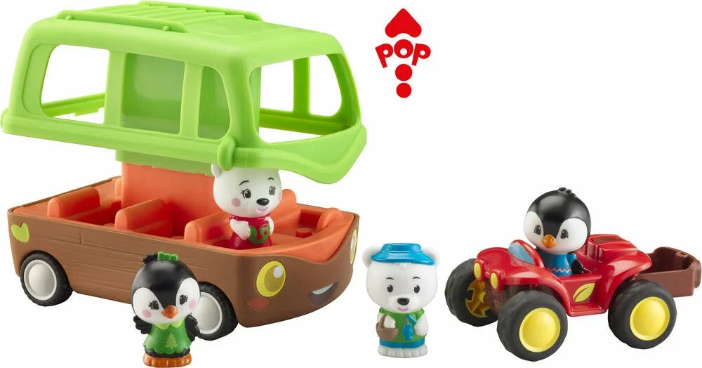 Tut tut ! C’est parti pour l’expédition avec le pack aventure ! Comprend : – Le bus aventure : 6 places à bord du véhicule, ainsi qu’un coffre pour mettre les bagages. Magique, pour monter à bord, il faut appuyer sur le toit … « Pop ! » … pour voir le bus s’ouvrir puis se refermer. Le quad : à découvrir, un coffre pop-up laissant apparaitre une deuxième place, après une simple pression. Il permet aussi de cacher tous ses trésors. 4 personnages exclusifs venant de la banquise.